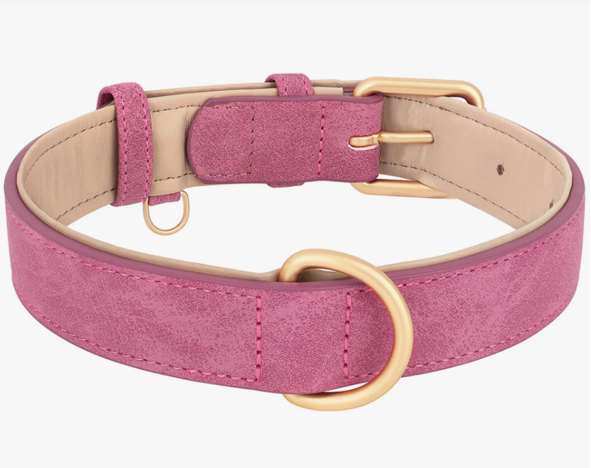 Pink Suede Dog Collar with Brushed Gold Hardware
